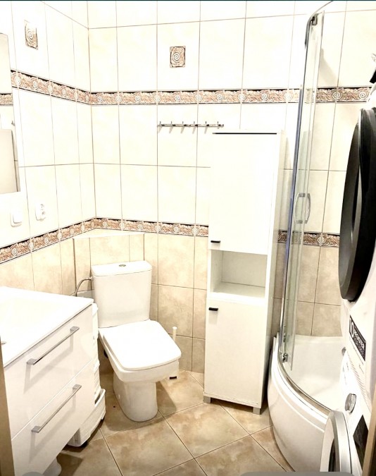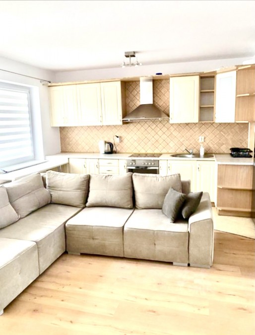 Kuchnia jest widna i połączona z salonem, wyposażona w meble na wymiar, wykonane pod indywidualne zamówienie. Ekspozycja na stronę zachodnią zapewnia doskonałe doświetlenie przez cały dzień. Mieszkanie jest częściowo umeblowane, co pozwala na wprowadzenie się bez konieczności większych nakładów.